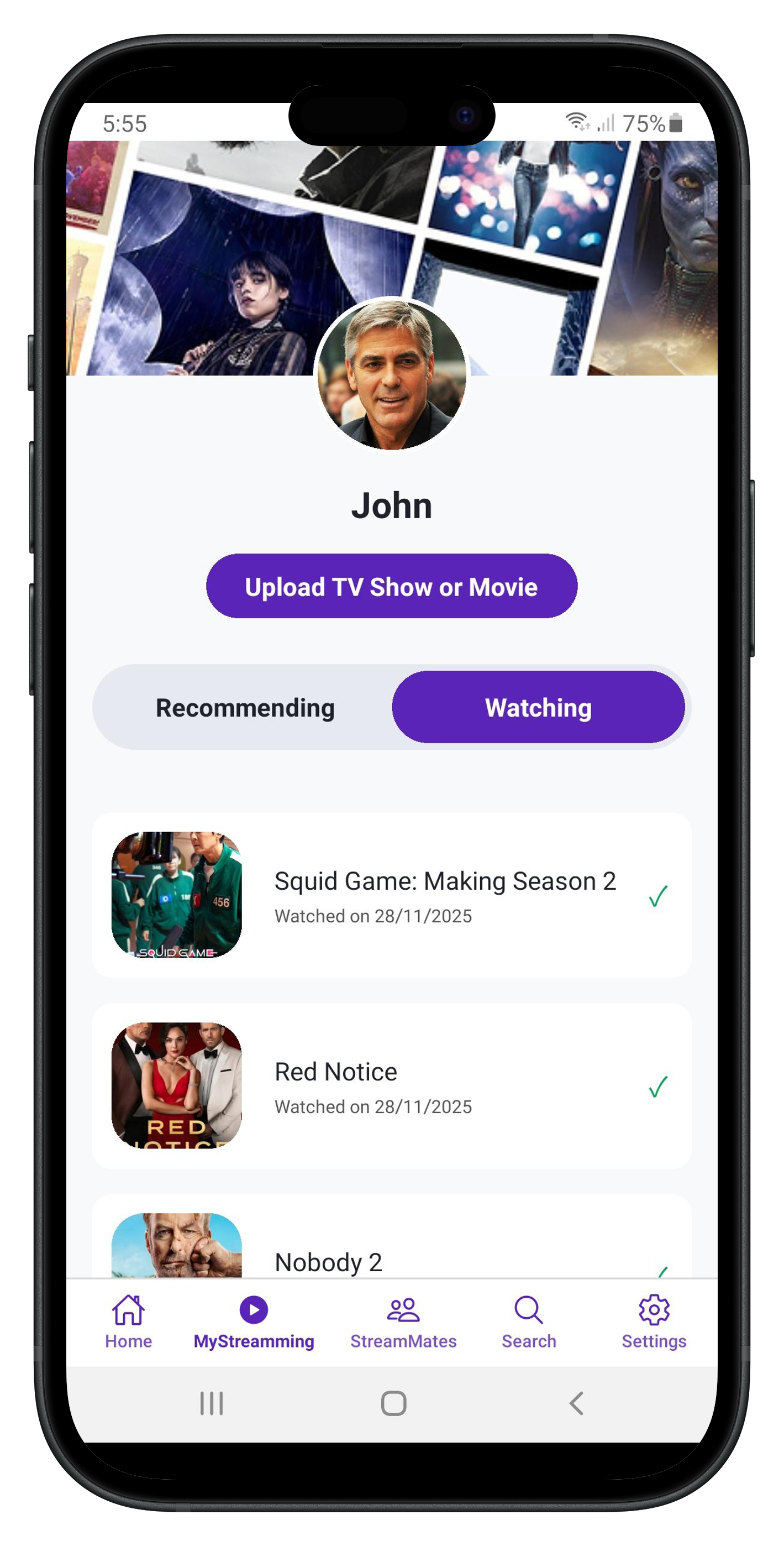 Step 3 — Connect –Follow other StreamMates and browse their profiles. See what they love, what they’re watching, and their top picks.